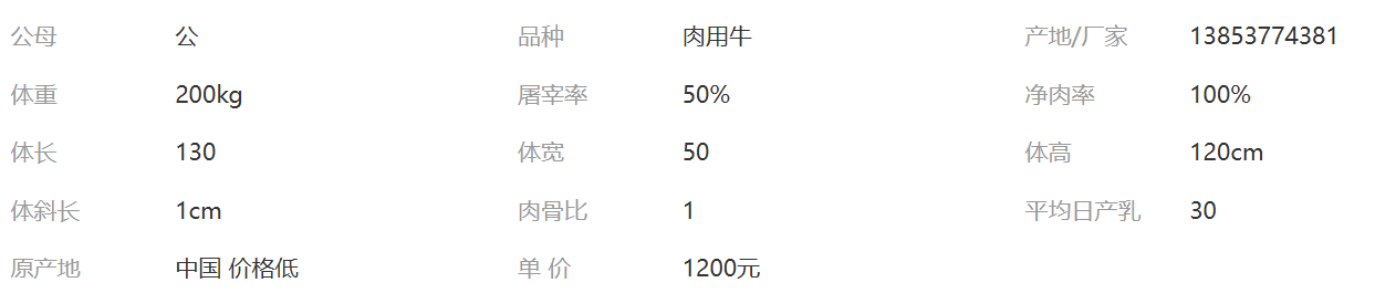 | 单价: | 1200.00元/头 |
