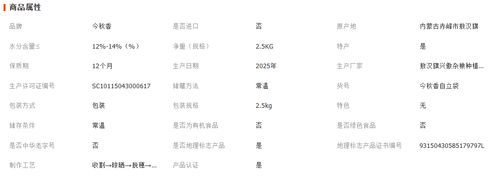 兴傲杂粮(青岛)有限公司发布的今秋香内蒙古赤峰敖汉小米5斤自立袋农家一类小米杂粮K1黄小米图集库
