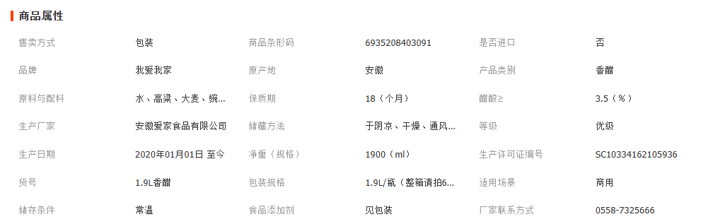安徽爱家食品有限公司发布的爱家香醋1900ml粮食酿造食醋家用桶装炒菜凉拌蘸料醋调料食用醋图集库