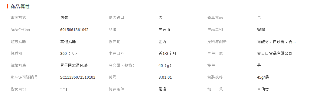 江西齐云山食品股份有限公司营销中心发布的齐云山南酸枣糕45g 绿色食品 江西特产酸枣糕 代发批发图集库