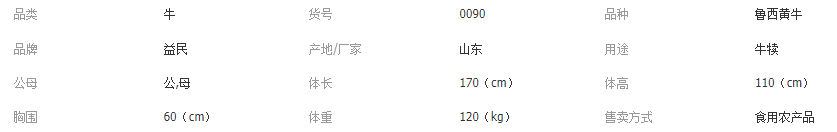 鲁西黄牛以其体驱大、遗传性能稳定、挽力强、耐粗饲、宜管理、皮肤干燥富有弹性、役肉兼用而著称。鲁西黄牛体躯高大,前躯发育好,肌肉发达,体质结实,结构匀称,适应性强,皮薄,产肉率较高,肉质鲜嫩,脂肪均匀地分布在肌肉纤维之间,形成明显的大理石花纹,有“五花三层肉”之美誉,是世界上著名的肉用品种牛之一,已经列入 畜禽遗传资源重点保护品种名录。成年公牛体重乎均为800--1200千克,母牛650——800千克。
