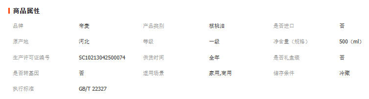 河北家丰植物油有限公司发布的帝麦有机野生山核桃油500ml 物理冷榨图集库