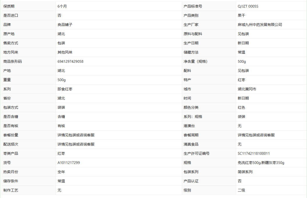 重庆齐诺食品有限公司发布的良品铺子新疆免洗枣500g煲汤泡水零食孕妇大枣灰枣干货红枣子图集库