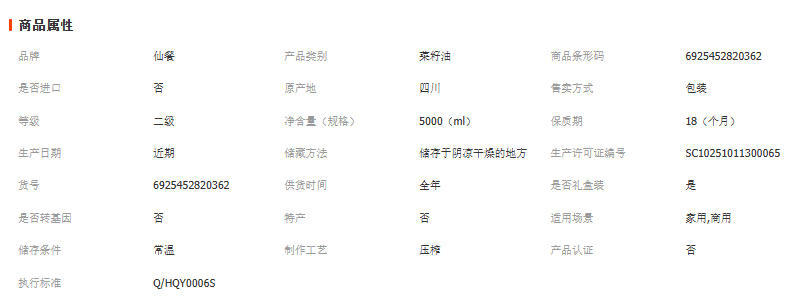 成都红旗油脂有限公司发布的整箱四川仙餐非转基因特黄浓香5升菜籽油食用油批犮5l图集库