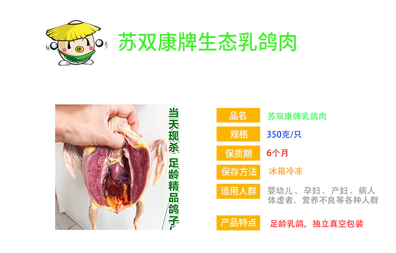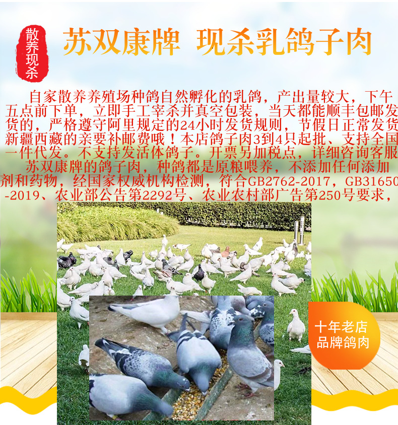 如东双康养殖场发布的批发苏双康牌冻鸽子肉食用农家散养活体现杀肉鸽子新鲜鸽子肉乳鸽图集库