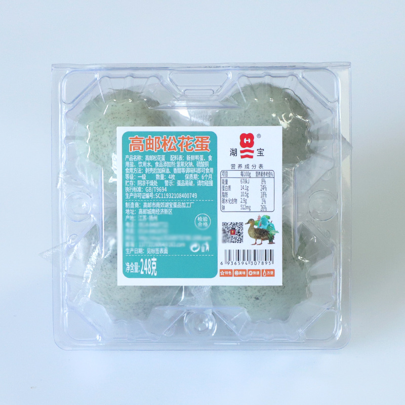 高邮市南郊湖宝蛋品加工厂发布的高邮松花蛋6枚8枚塑料盒装超市供应零售批发溏心高邮皮蛋无铅工艺图集库