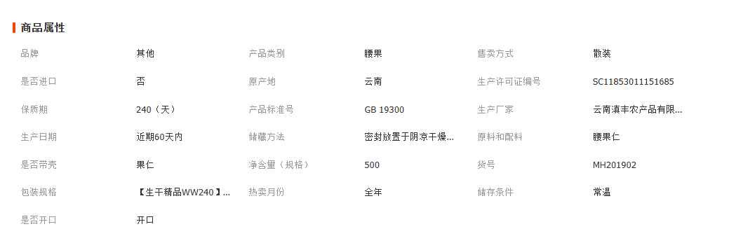 云南木河云生果业有限公司发布的【腰果仁WW240整碎仁生腰果500g散装整箱批发原味ww320图集库