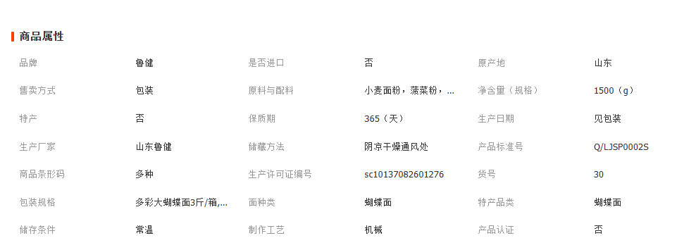 山东济宁鲁健食品有限公司发布的3斤/5斤整箱装蝴蝶面螺丝贝壳面多口味果蔬面低盐营养 鲁健 蝴蝶面 1箱图集库