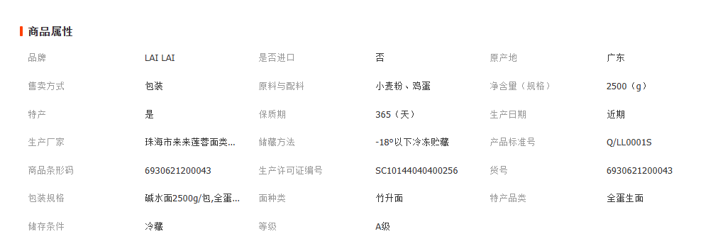 广东来来食品有限公司发布的广式碱水面湿水煮面99%全蛋面5斤/包冷藏广东营养早餐竹升面图集库