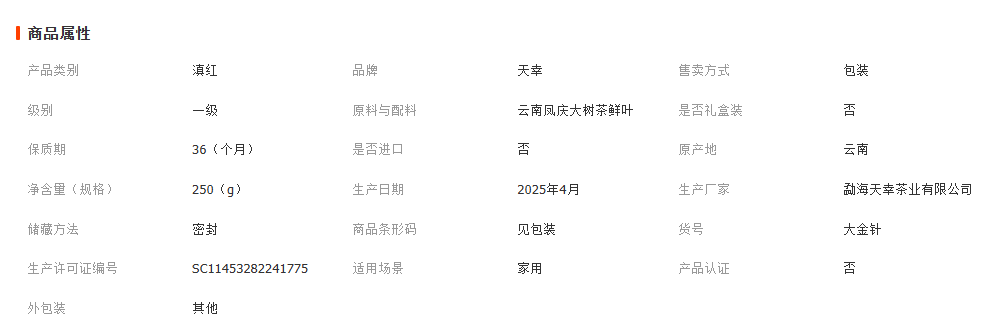 勐海天幸茶厂有限公司发布的云南滇红茶金丝凤庆滇红蜜香大金芽乔木红茶大金针罐装浓香型茶叶图集库