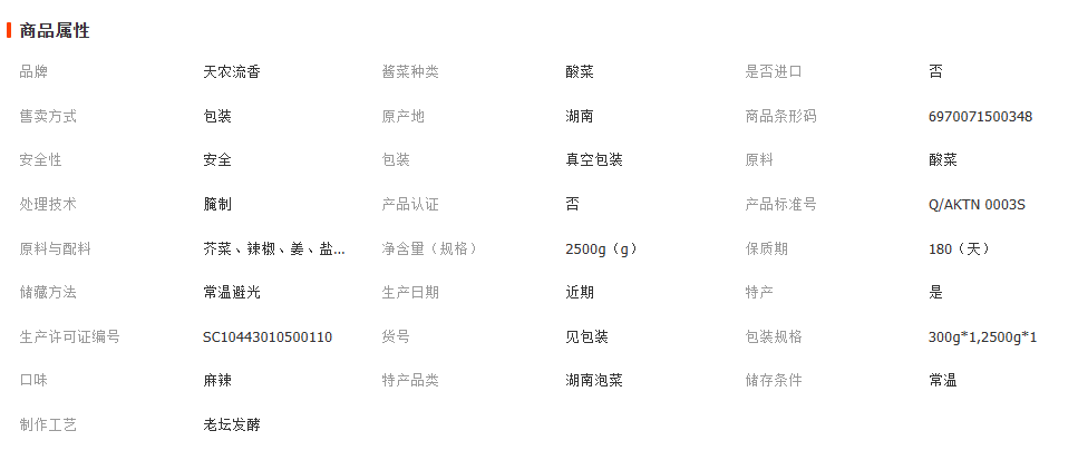 湖南省天农农家食品有限公司发布的坛香鱼酸菜湖南特产厂家直销坛香酸菜天农流香2500g咸菜图集库