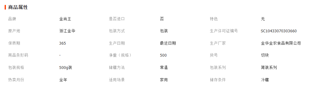 金华市金农食品有限公司发布的浙江特产金华火腿火腿芯肉上方切片500g1斤装块猪肉真空包装低盐图集库