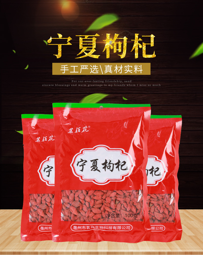 亳州市茗兴生物科技有限公司发布的厂家直供 宁夏枸杞 100g/袋枸杞子新货地摊枸杞子宁夏 红枸杞图集库