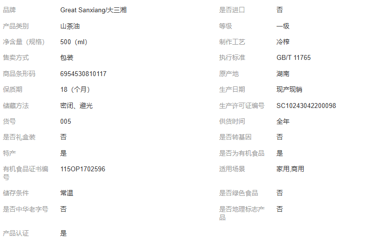 湖南大三湘茶油股份有限公司发布的山茶油厂家就选大三湘 压榨一级山茶油原料批发/ 化妆品用山茶油图集库