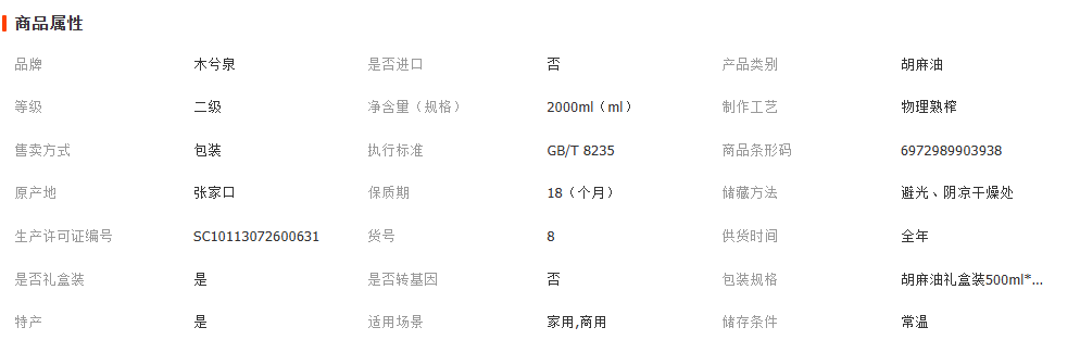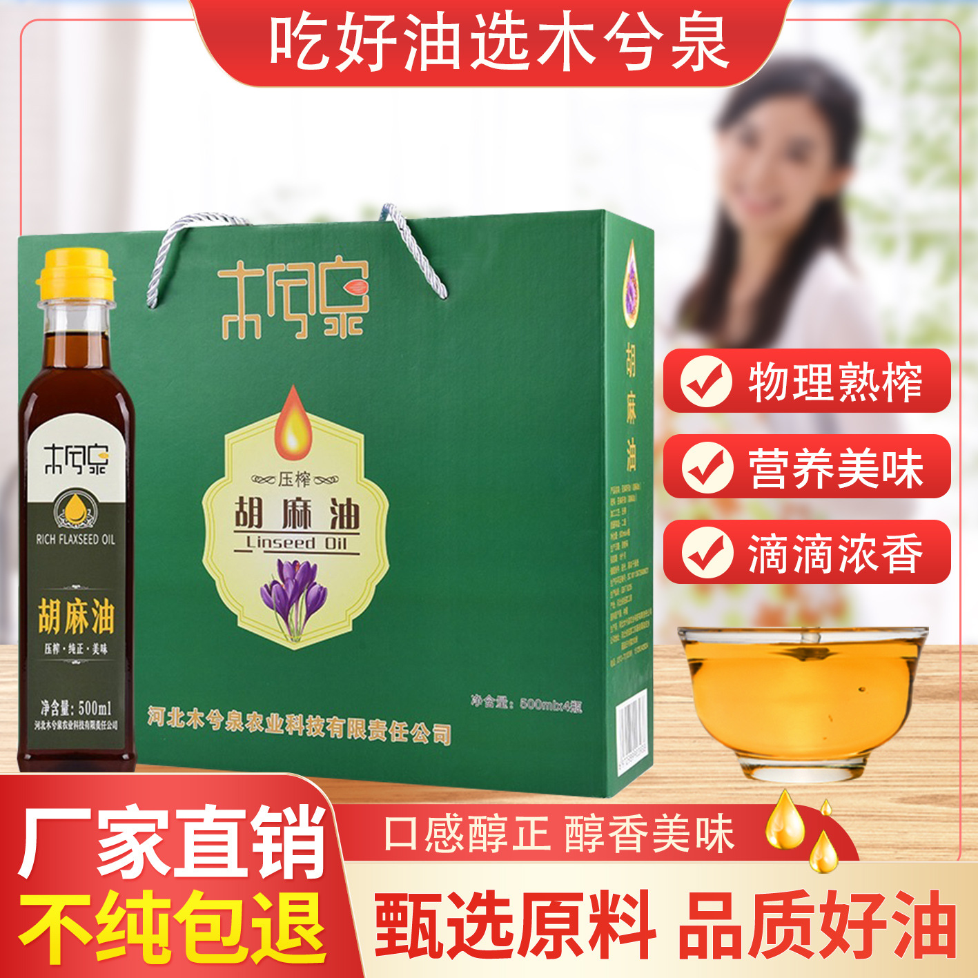 河北木兮泉农业科技有限责任公司发布的木兮泉纯胡麻油礼盒装500ml*4瓶/亚麻籽油节日送礼河北特产批发图集库