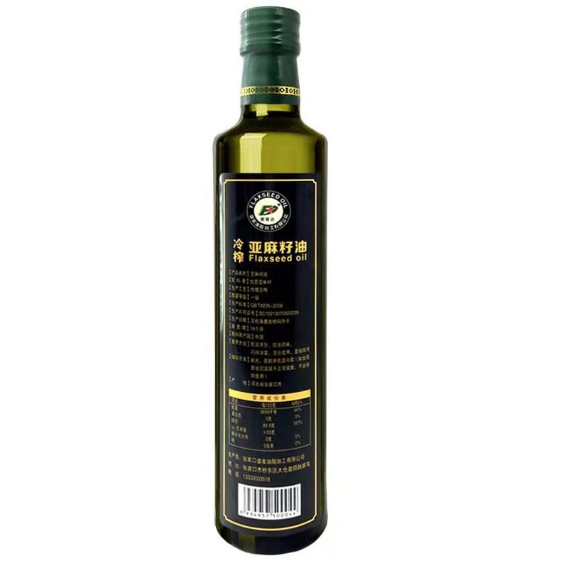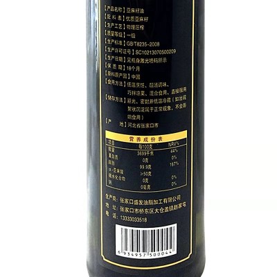 张家口盛发油脂加工有限公司发布的厂家批发500ML一级冷榨纯亚麻籽油宝妈月子油现货食用油节日礼品图集库