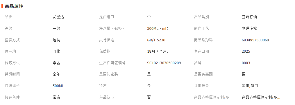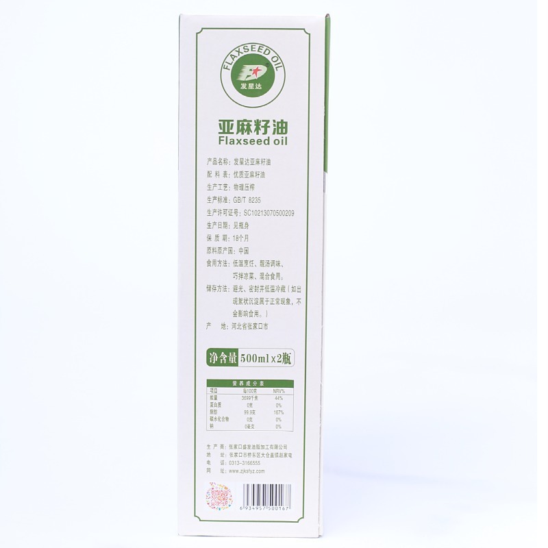 张家口盛发油脂加工有限公司发布的亚麻籽油500ML冷榨一级黄金产地礼盒装源头工厂图集库