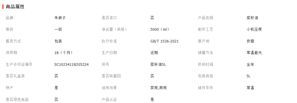 明光市朱麻子食用油有限公司发布的安徽老字号浓香菜籽油5升本地农家菜油家用纯正食用油5L特产植物图集库