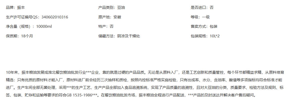 淮北市振丰粮油有限公司发布的餐饮粮油批发10L振丰一级大豆油图集库