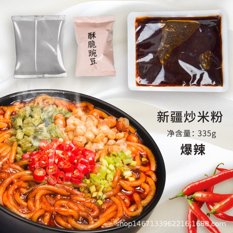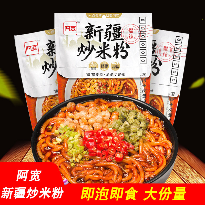 四川省北川绿叶春农业科技有限公司发布的阿宽新疆爆辣炒米粉干拌粗米线方便面冲泡速食带酱料粉条袋装图集库