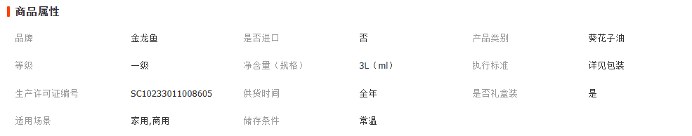 北京金腾创科贸有限公司发布的金龙鱼阳光零反式脂肪压榨葵花仁油1.5L*2礼盒图集库