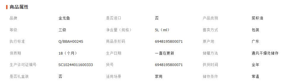 广州市广生林贸易有限公司发布的金龙鱼醇香菜籽油5L/桶食用油滴滴菜油香桶装炒菜家菜籽油图集库