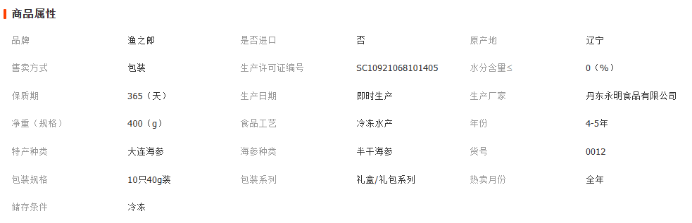 丹东永明食品有限公司发布的渔之郎即食海参礼盒10只40g装 海参产地大连一件代发图集库