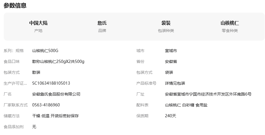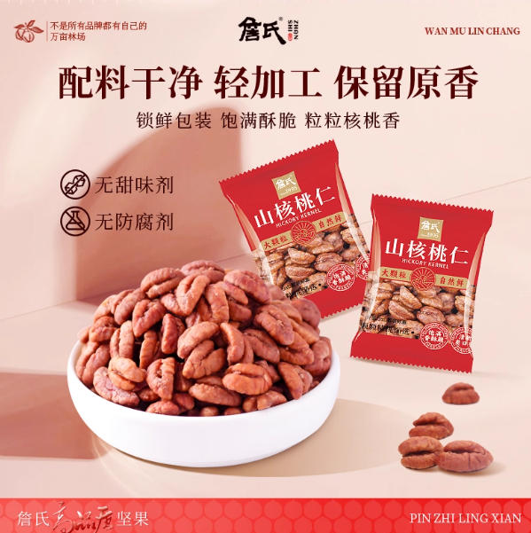 安徽松鼠云詹氏食品有限公司发布的25年新货詹氏山核桃仁分享装250gX2共500g散装独立小包装核桃肉图集库