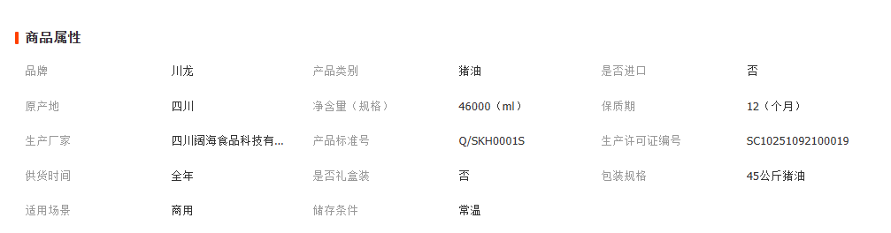 四川省川龙酿造食品有限公司发布的餐饮大桶装食用猪油45kg川龙浓香型胶桶猪大油90斤动物油起酥油图集库