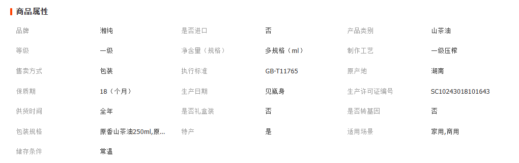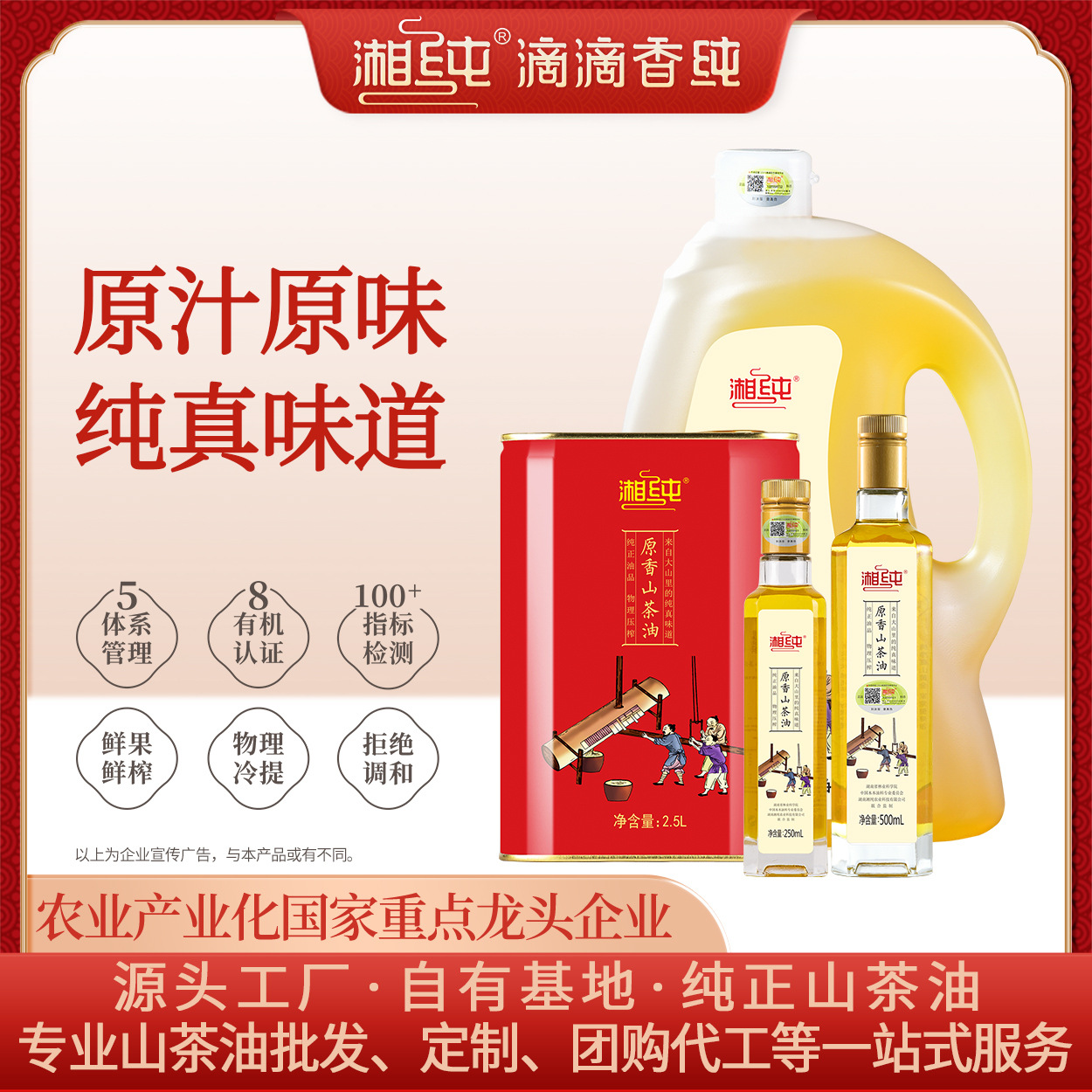 湖南湘纯农业科技有限公司发布的茶籽油湘纯山茶油系列一级冷榨压榨非转基因湖南特产冷榨工艺图集库