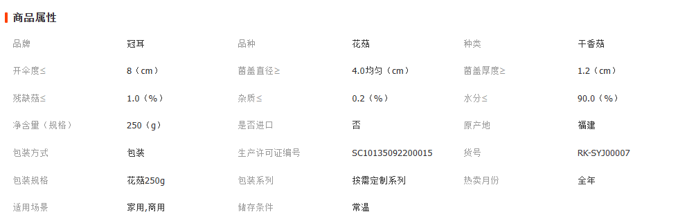 古田县润康食品有限公司发布的冠耳 福建古田花菇 香菇 农家土特产 椴木大花菇 2019年新货250g图集库