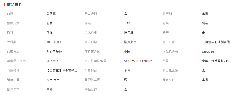 昆明德骐商贸有限公司发布的金菜花特香菜籽油5L装家用商用物理压榨非转基因食用植物油批发图集库
