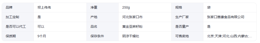 张家口惠康食品有限公司发布的熟黄金亚麻籽粉 即食代餐 产地生产 低温熟制 可代工图集库