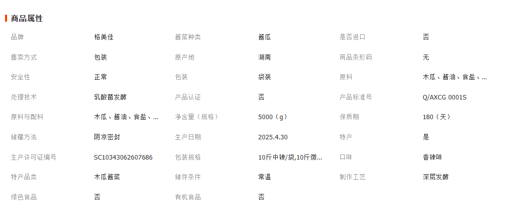 长沙创格食品有限公司发布的木瓜丝 散装木瓜丝酱菜 木瓜条香辣味 真空包装10斤 普通款图集库