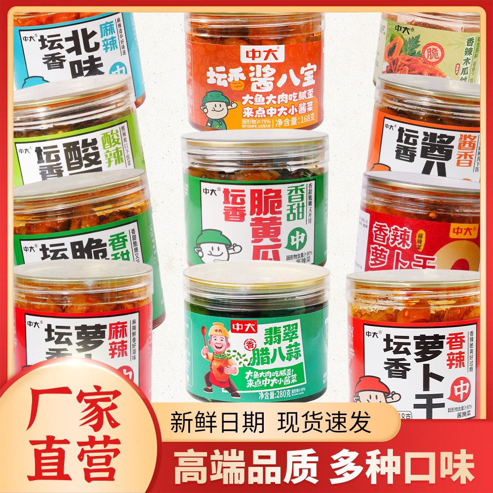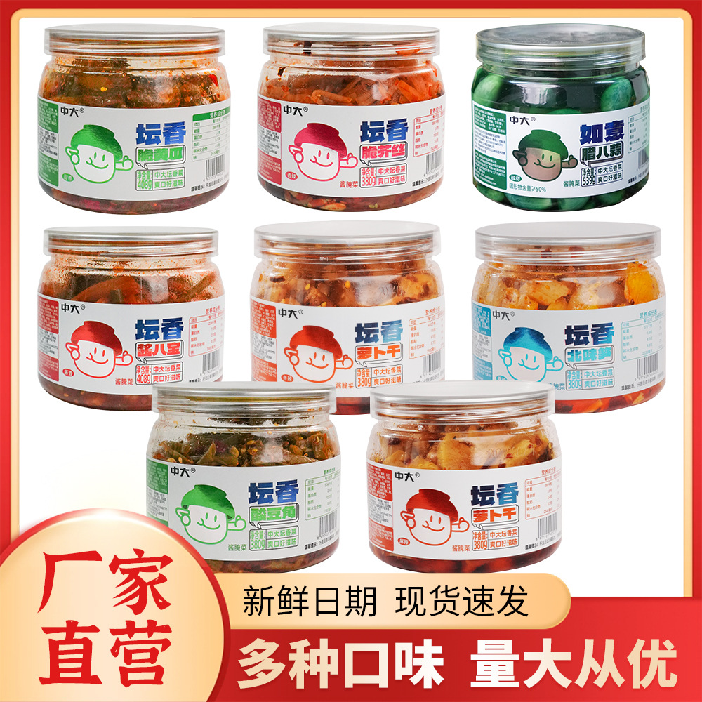 河南省刘华食品有限公司发布的腾晖酱菜酱香干380g香辣萝卜笋豆角黄瓜地环八宝蒜组合罐装下饭菜图集库