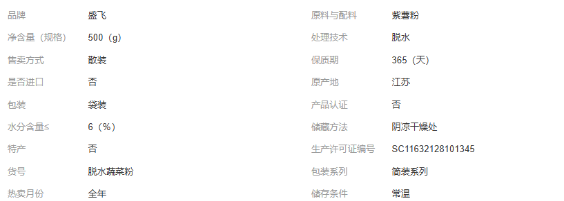 江苏盛飞食品有限公司发布的脱水紫薯粉烘焙用熟粉甜品点心可食用调色粉代餐粉果蔬粉低脂图集库