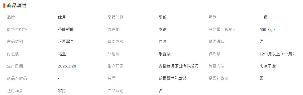 安徽绿月茶业股份有限公司发布的2026年明前新茶500g礼盒装春茶叶岳西翠兰高山云雾茶绿茶包邮图集库