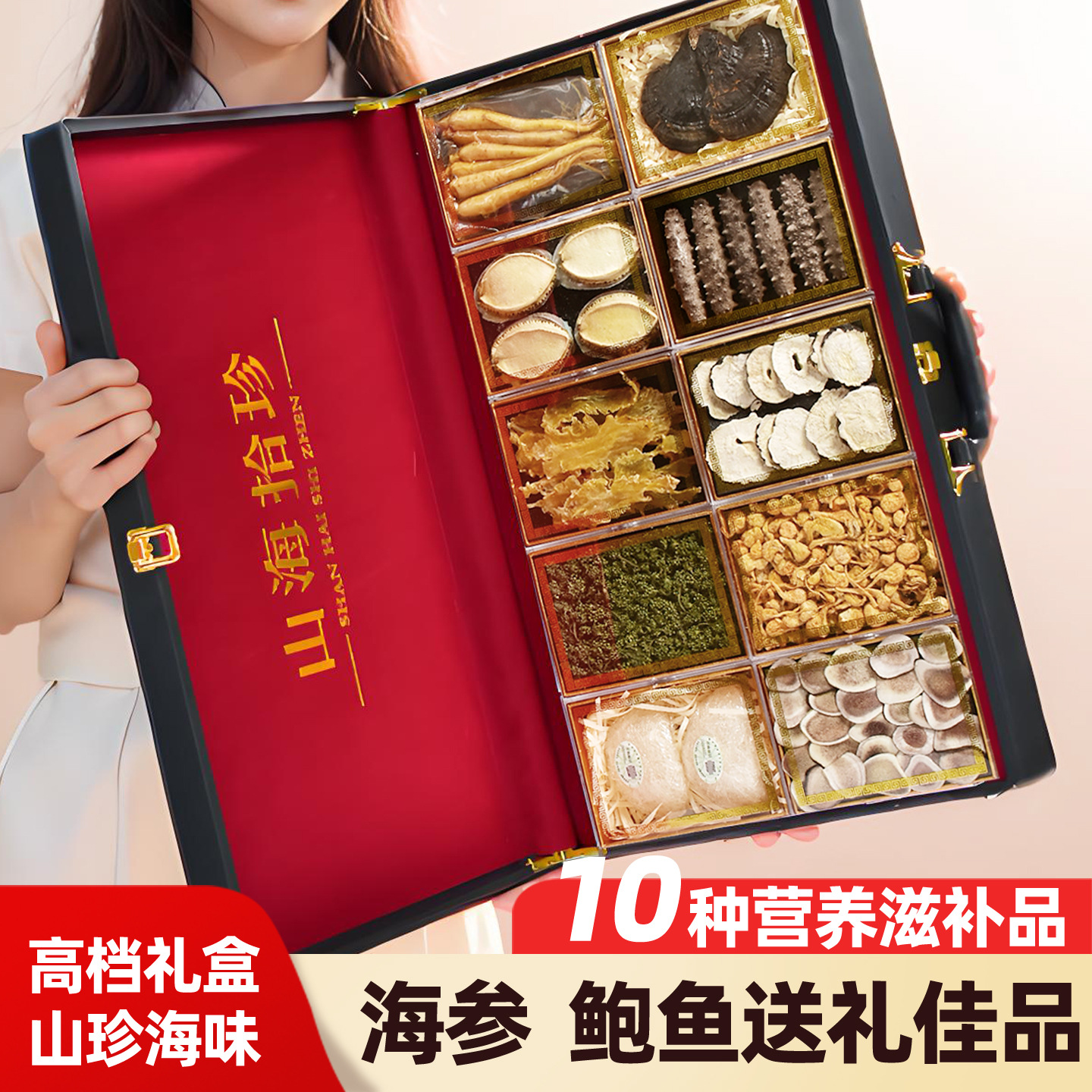 山海宴(临沂)食品有限公司发布的厂家批发礼盒海参鲍鱼礼盒装海鲜海产品干货滋补品大连冻干图集库