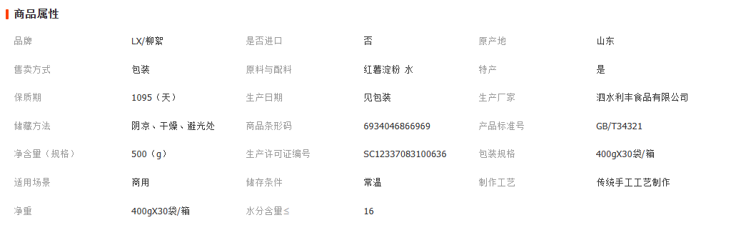 泗水利丰食品有限公司发布的山东济宁泗水柳絮纯红薯地瓜淀粉宽粉400g*30包箱装规格图集库