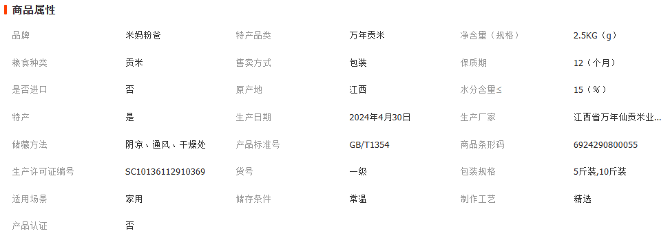 江西省万年仙贡米业有限公司发布的米妈粉爸万年贡米江西大米长粒口感软糯颗粒饱满农家长粒香大米图集库