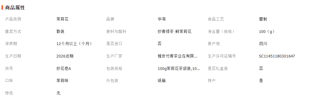 成都华淘茶业有限公司发布的2026新茉莉花茶飘雪新茶浓香型茉莉绿茶散装茶叶四川花毛峰茶图集库