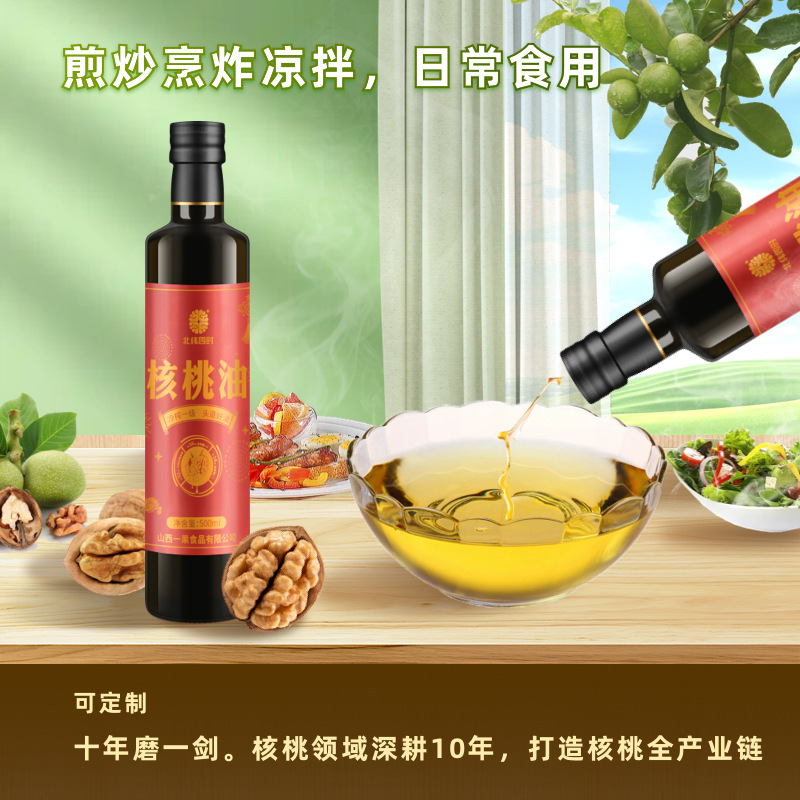山西一果食品有限公司发布的核桃油压榨食用油家用无添加食用油小瓶油礼盒食用油批发图集库
