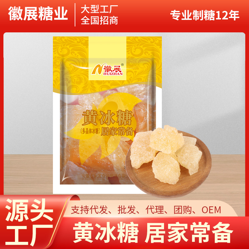 安徽省来发食品贸易有限公司发布的302g黄冰糖袋装多晶甘蔗老冰糖烘焙家用调味品煲汤厂家批发黄糖图集库