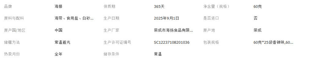 芙多儿绿色食品(威海)有限公司发布的60克30克海婷海带丝开袋即食香辣原味鲜香麻辣味酱菜咸菜包装批发图集库