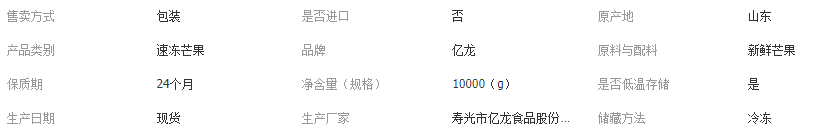 寿光市亿龙食品股份有限公司发布的月销过百 冷冻芒果肉 冷冻芒果瓣 新鲜台农芒 现榨果汁 餐饮烘焙图集库