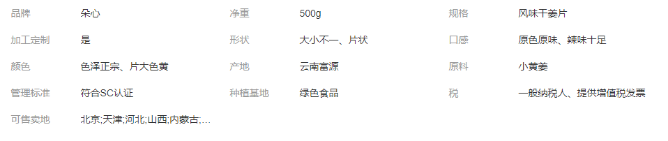 富源县耀康生态农业有限公司发布的耀康农业朵心去皮无硫干姜片 符合HACCP认证 500g图集库