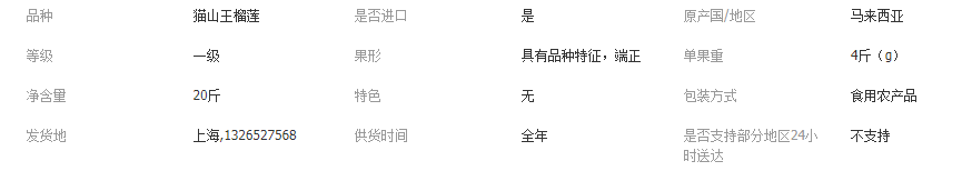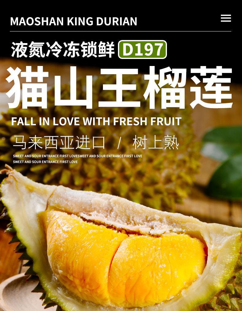 上海漫时刻食品有限公司发布的马来西亚猫山王d197正宗液氮4头5头6头整箱源头直供冷冻带壳整果图集库