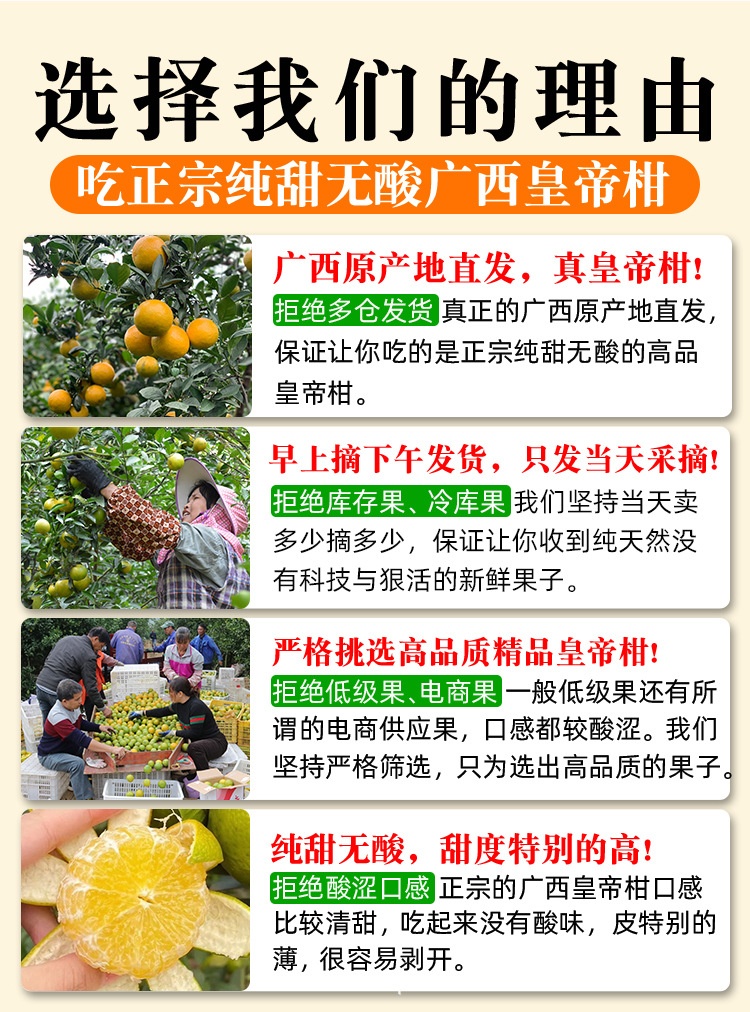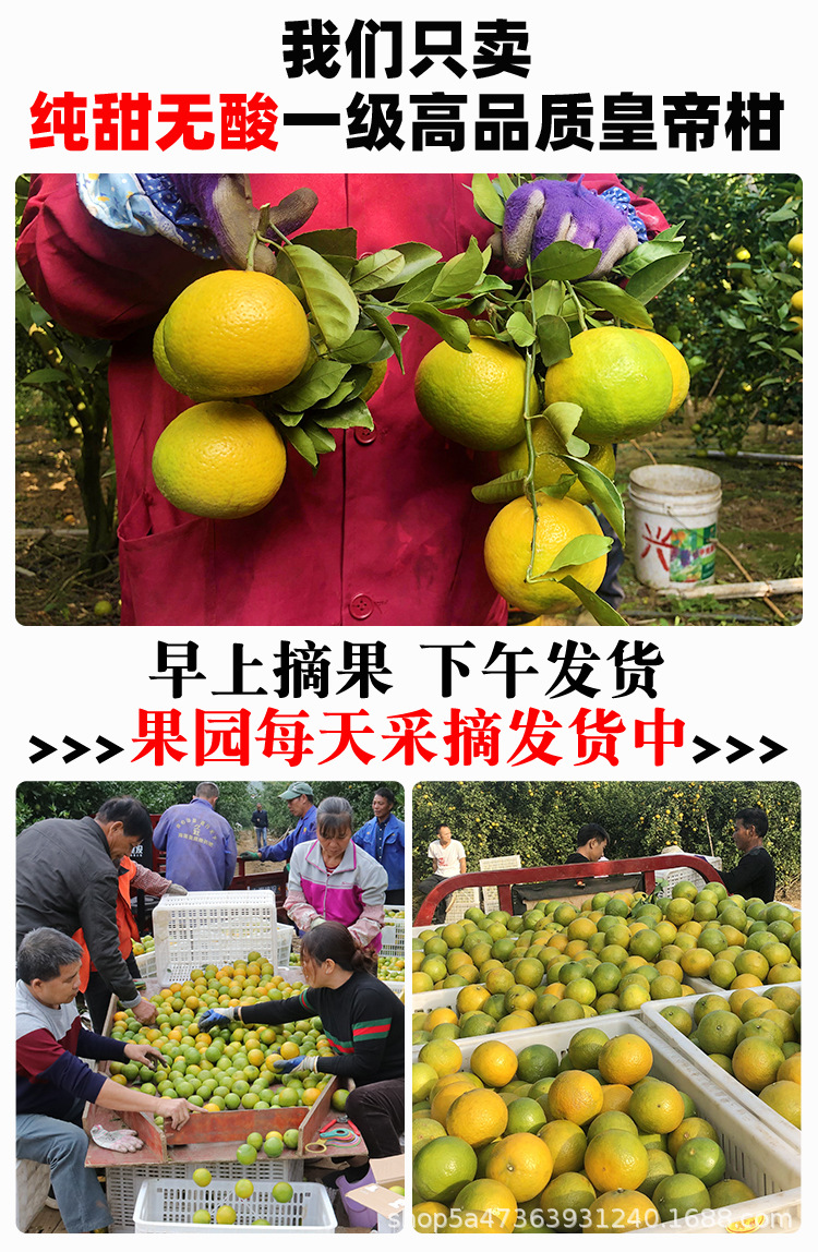 南宁新仁利农业科技有限公司发布的纯甜广西皇帝柑新鲜橘子现摘3-9斤一级品质大果当季水果一件代发图集库