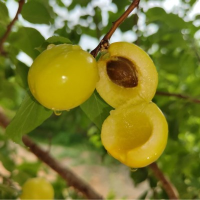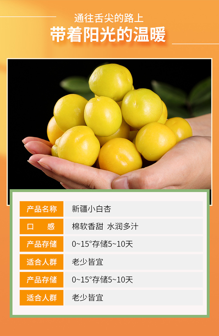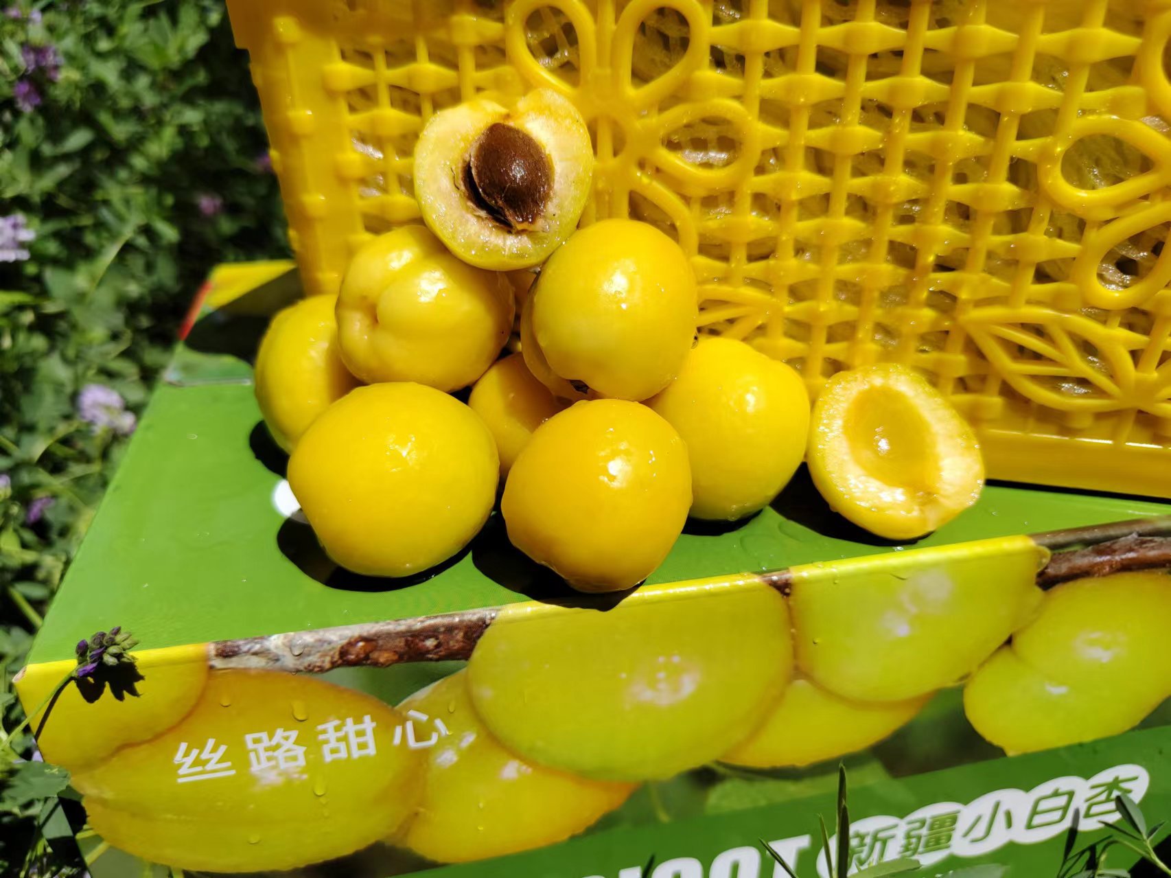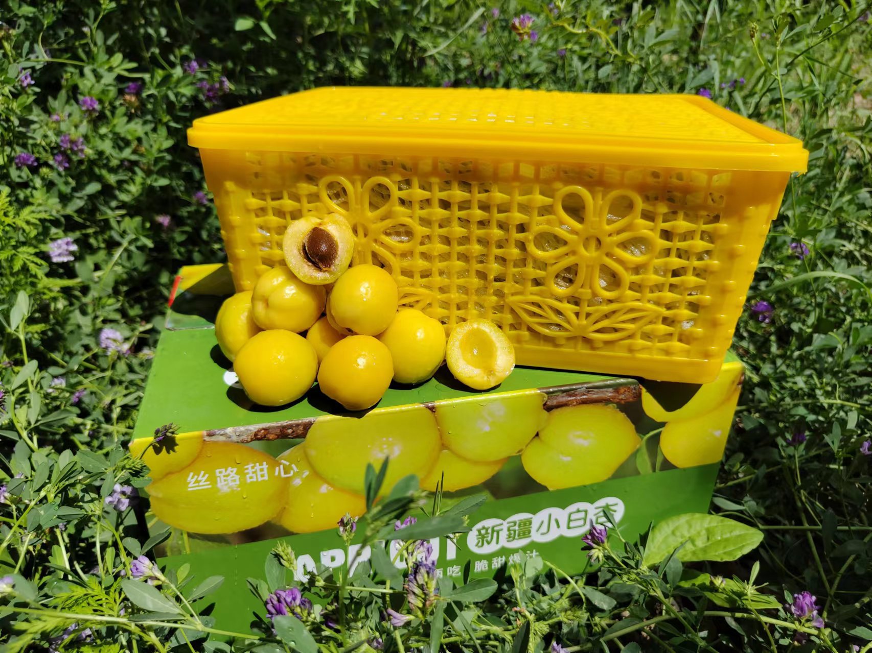 阿克苏万亩果源果业种植农民专业合作社发布的新疆轮台小白杏子新鲜水果库车甜杏子应季孕妇4斤顺丰空运包邮图集库