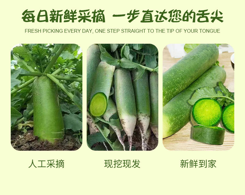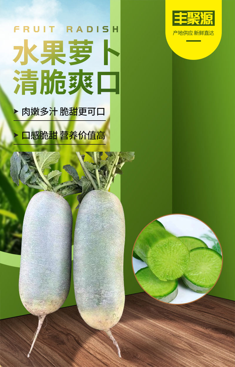 青岛丰聚源农业科技有限公司发布的山东潍坊青萝卜 正宗潍县萝卜 新鲜甜脆生食现挖现发翠绿水果萝卜图集库